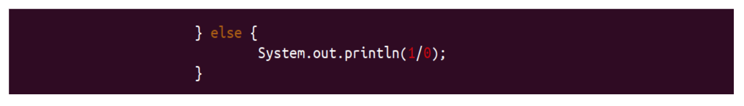 Depending on the exception thrown, fix the issue in the relevant Java source file(s). a. In the example shown above, the issue was caused by an arithmetic error (division by zero). Go to the specific source file and line number indicated by the stack trace.