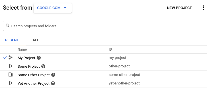 Click the Project Selector at the top of the view.