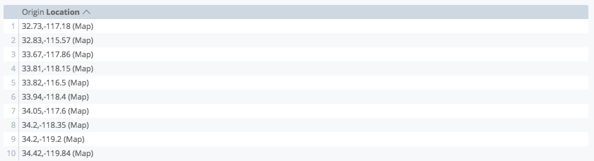 The Automagic Heatmap will re-query your data to construct the heatmap grid. A location dimension will typically show distinct points with one latitude/longitude coordinate, but when you use a heatmap, the dimension changes to the bounding boxes ("Heatmap region from ... to ..") of each square in the grid.