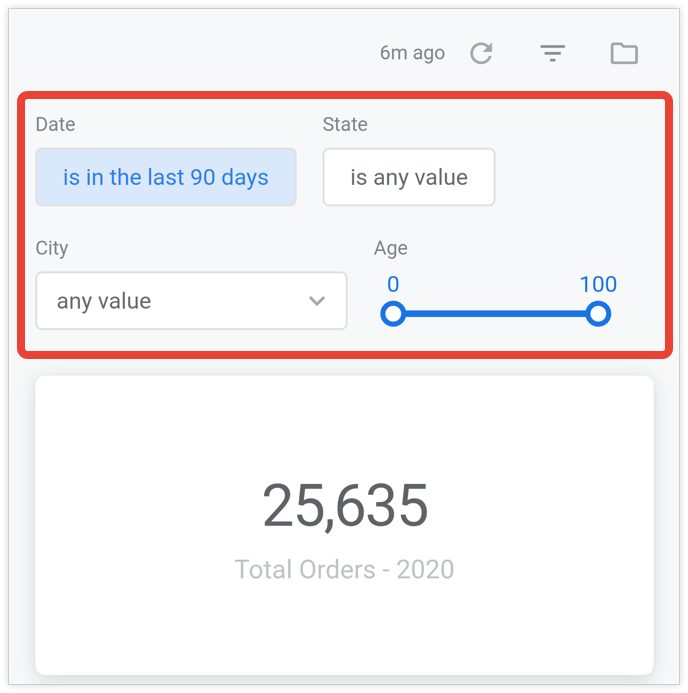 Then, select the reload data icon to see how the filter value changes affect your data.