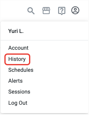To view a list of recent queries ordered by date, select the Profile menu and then select History.