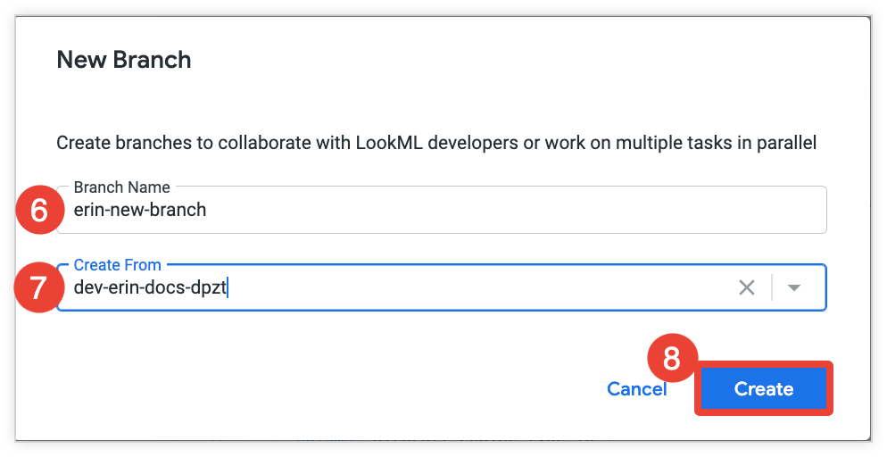 • Begin with the prefix: dev- (reserved for the personal branches of Looker developers)