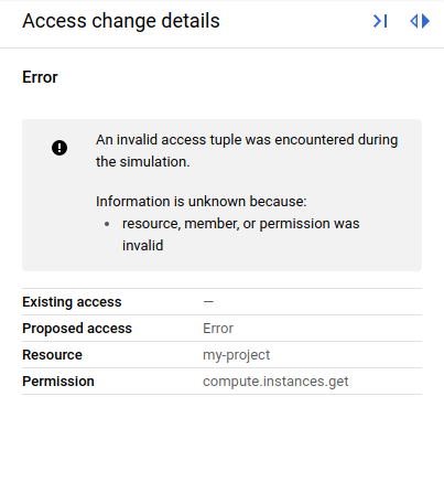 To get the most complete results from a simulation, we recommend that you have certain IAM and Google Workspace permissions. If you don't have some or all of these permissions, you can still run a simulation. However, running a simulation without these permissions could result in an increased number of unknown access changes, because you might not be able to retrieve information that could impact the results of the simulation.